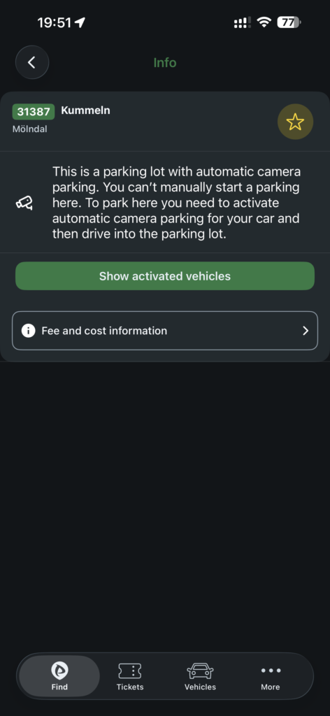 För betalning så går det att använda Parkering Göteborg (iPhone | Android), Easypark eller Parkster. Vid infart läses registreringsskylten av så om du har aktiverat automatisk parkering i någon av ovan appar så sker betalning automatiskt.